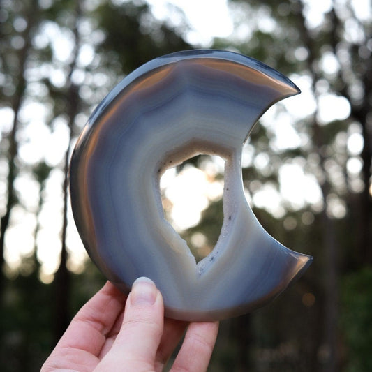 Agate Druzy Geode Moon | Agate Crystal Moon Carving