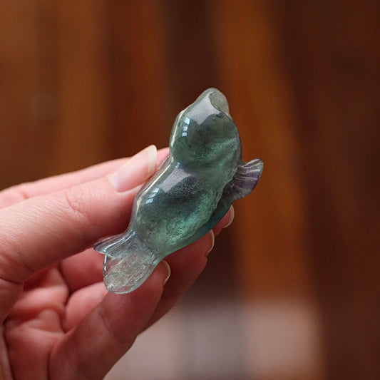 Adorable Fluorite Seal Carving | Baby Seal | Rainbow Fluorite Animal