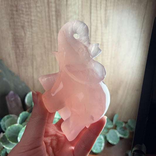 Star Rose Quartz Elephant Carving | Crystal Animal Carving