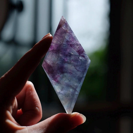 Fluorite Diamond + Stand | Fluorite Crystal Rhombus Carving