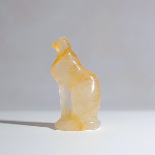 Golden Healer Quartz Cat Carving | Egyptian Crystal Cat Figure