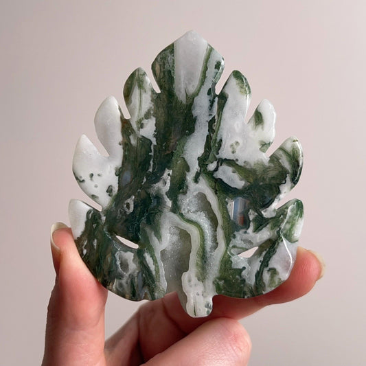 Moss Agate Monstera Leaf | Crystal Leaf Carving