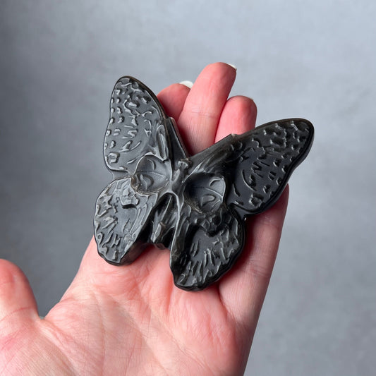 Silver Sheen Obsidian Moth Carving | Crystal Butterfly