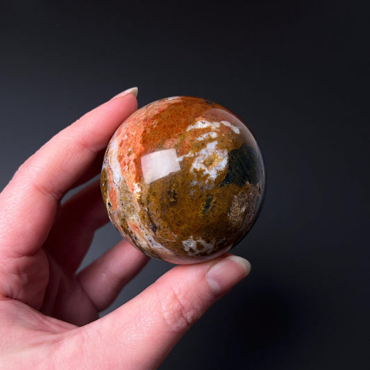 Blue Apatite in Orange Calcite Sphere | Apatite Jasper Crystal Sphere