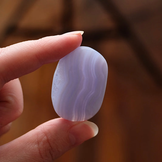 Blue Lace Agate Pocket Stone | Blue Lace Crystal Palm