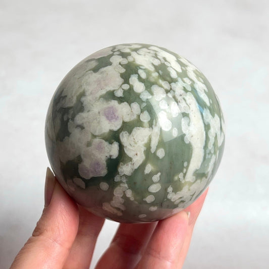 Peace Jade Sphere | Peace Blossom Fluorite Crystal Sphere