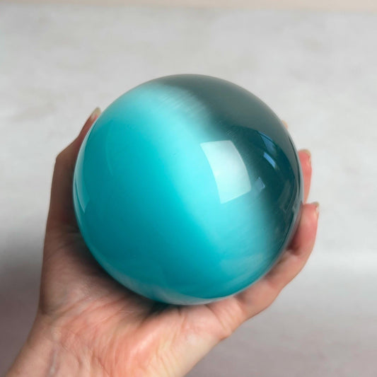 XL Cats Eye Sphere | Aqua Cats Eye Glass Crystal Sphere