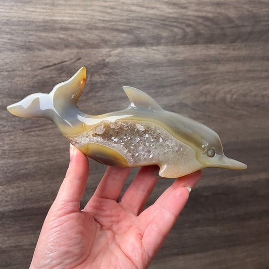 Druzy Agate Dolphin Carving | Agate Geode Dolphin | Crystal Dolphin