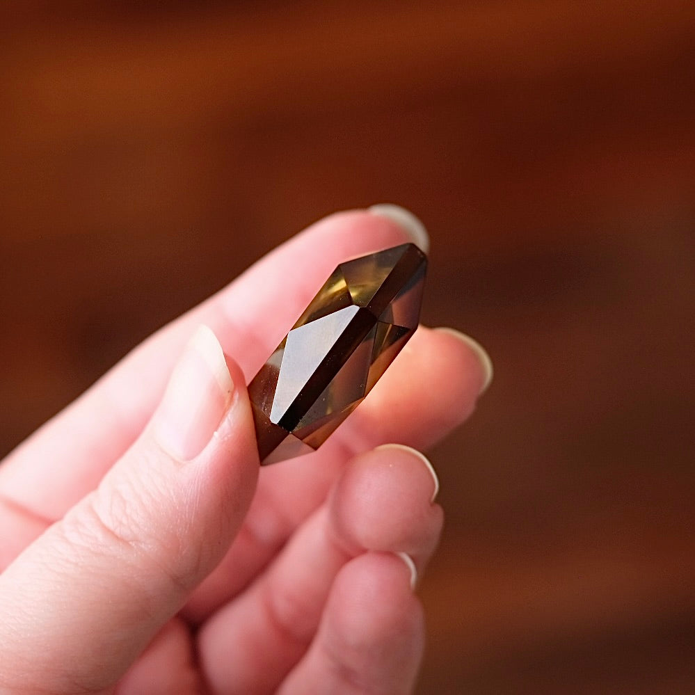 completely natural unheated Citrine / faceted sacred geometry gem stone / sparkles beautifully in the light due to the faceted sides all over, the photos never do these justice! / stunning smokey citrine colouration with a darker smokey phantom zone, and super translucent / glossy polished finish