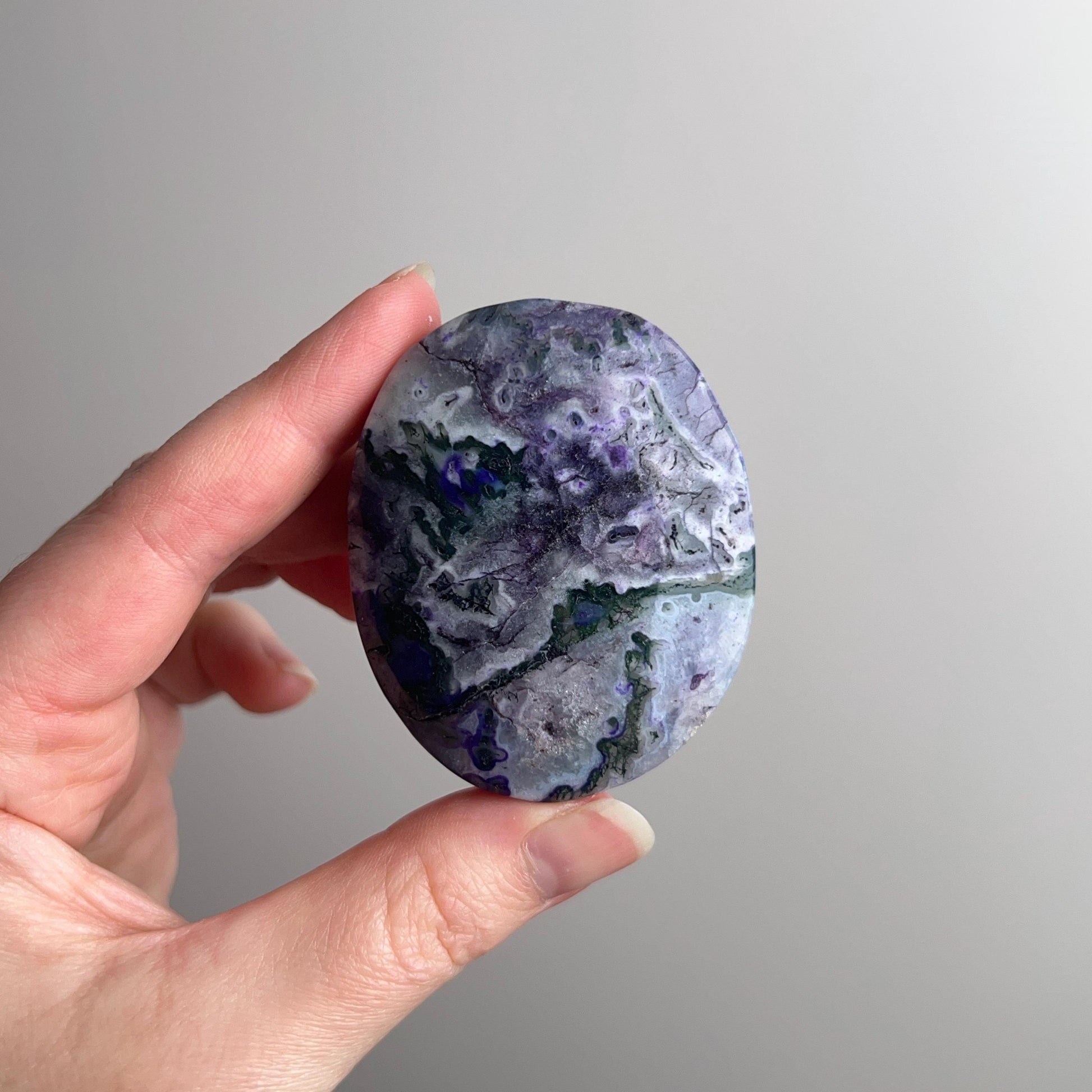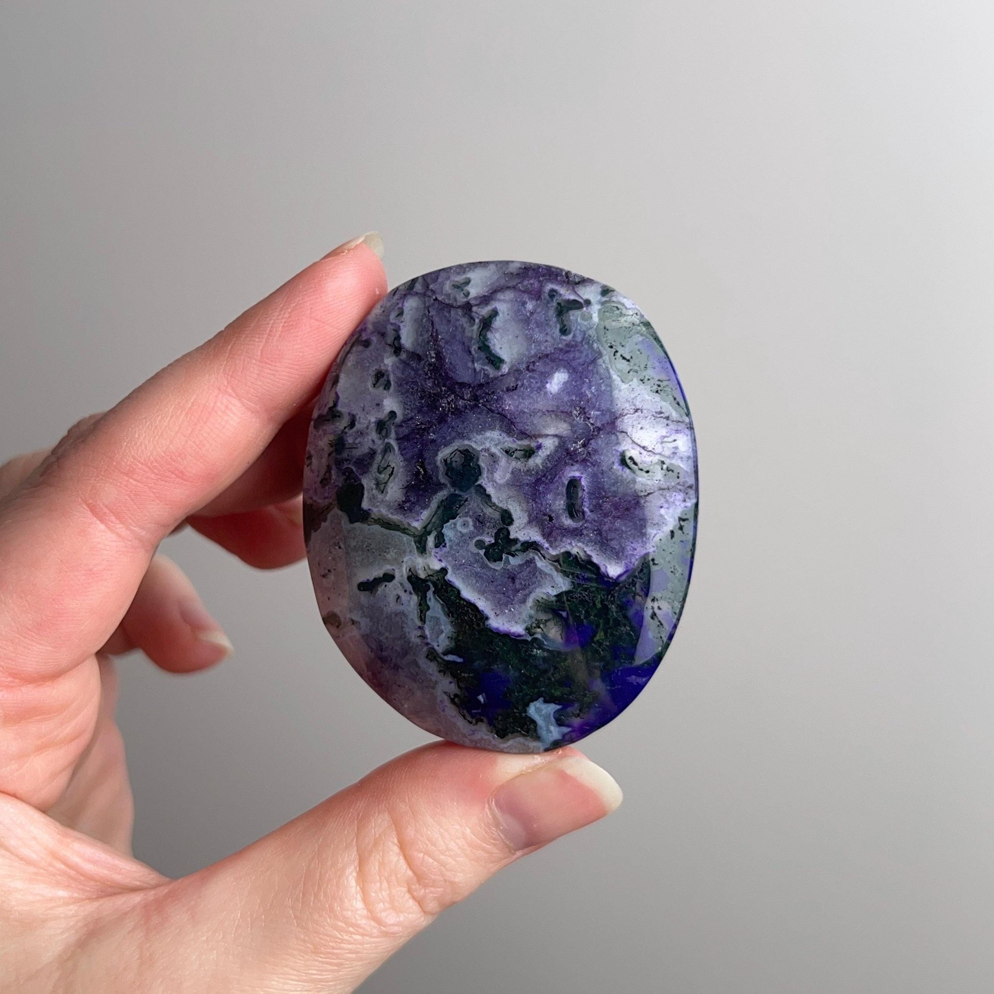 Dyed Moss Agate Palm | Moss Agate Crystal Palm Stone