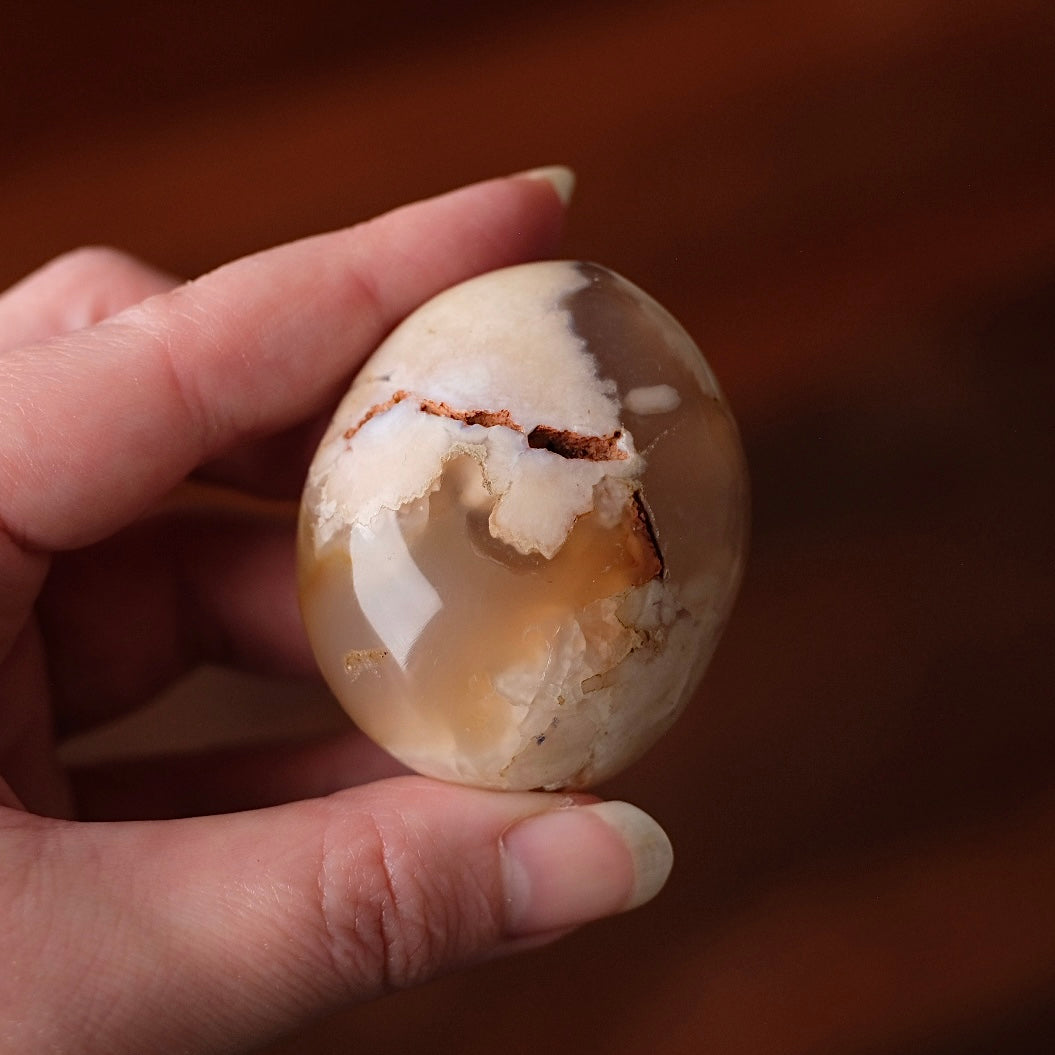 Known for its soft, feminine energy, Flower Agate is a newly discovered stone from Madagascar. With gorgeous orbicular patterns and floral plumes, this stone is associated with self-growth and helping us to blossom into our full potential. Known as the stone of plentitude, bringing abundance to all areas of life. Agate in the oldest good luck amulet. Considered a protective stone (especially for travel), said to shield its keeper against dangers. Increases inner stability, enhances personal courage and fosters self-confidence. Grounding and soothing. Balancing stone for one‘s energy system to experience oneness instead of duality.
