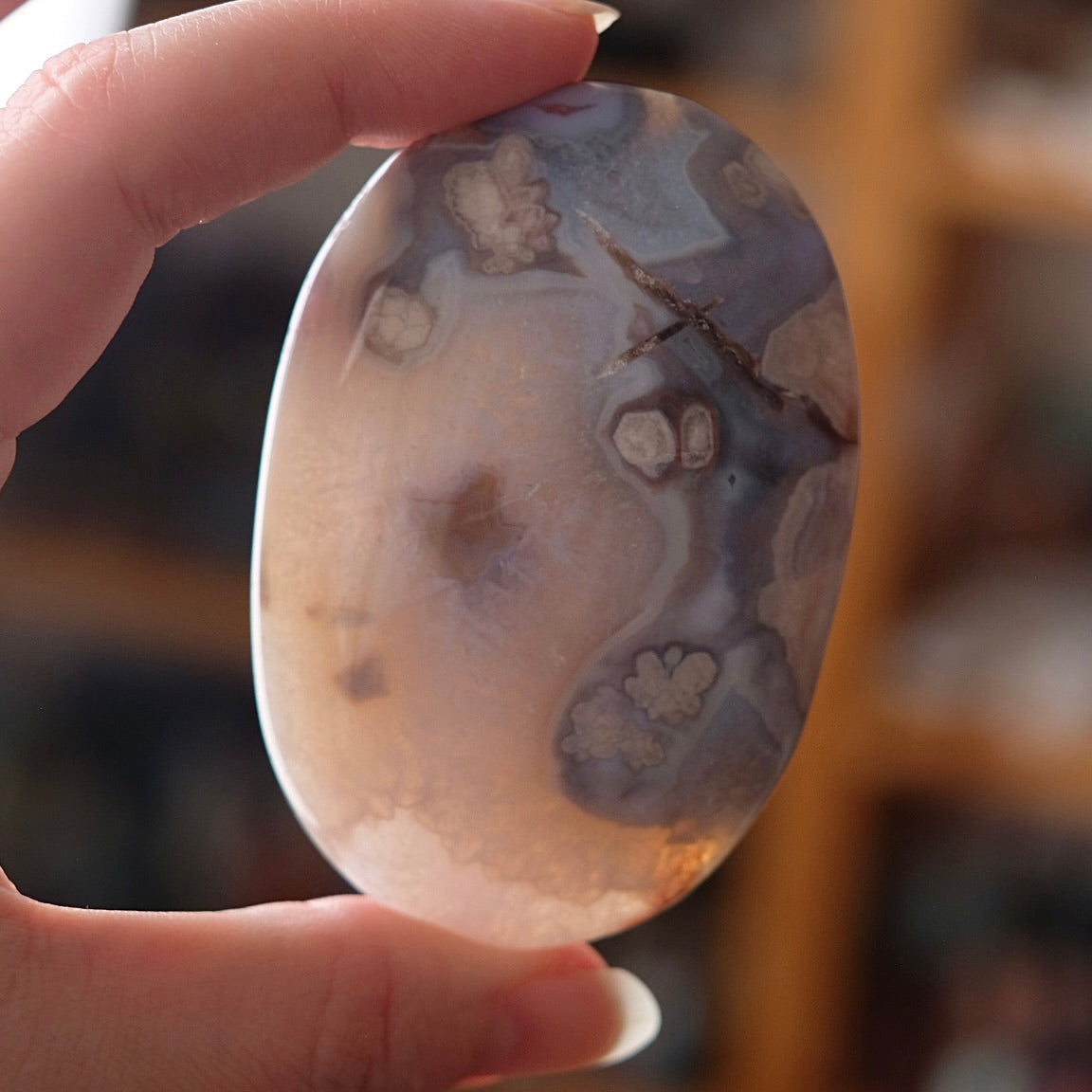 Known for its soft, feminine energy, Flower Agate is a newly discovered stone from Madagascar. With gorgeous orbicular patterns and floral plumes, this stone is associated with self-growth and helping us to blossom into our full potential. Known as the stone of plentitude, bringing abundance to all areas of life. Agate in the oldest good luck amulet. Considered a protective stone (especially for travel), said to shield its keeper against dangers. Increases inner stability, enhances personal courage and fosters self-confidence. Grounding and soothing. Balancing stone for one‘s energy system to experience oneness instead of duality.