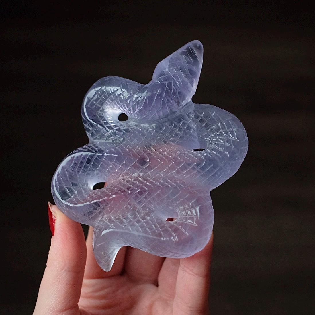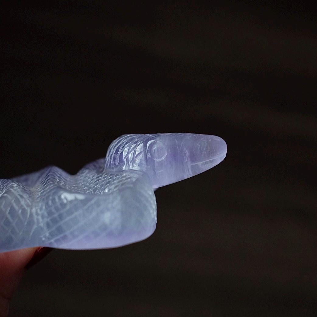 Beautiful Tanzanite Fluorite snake / python carving. <3