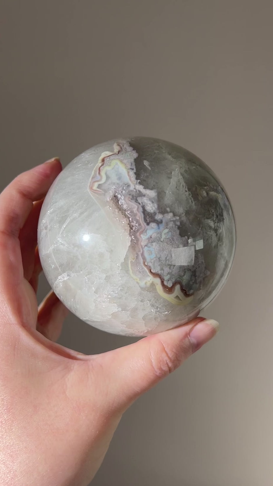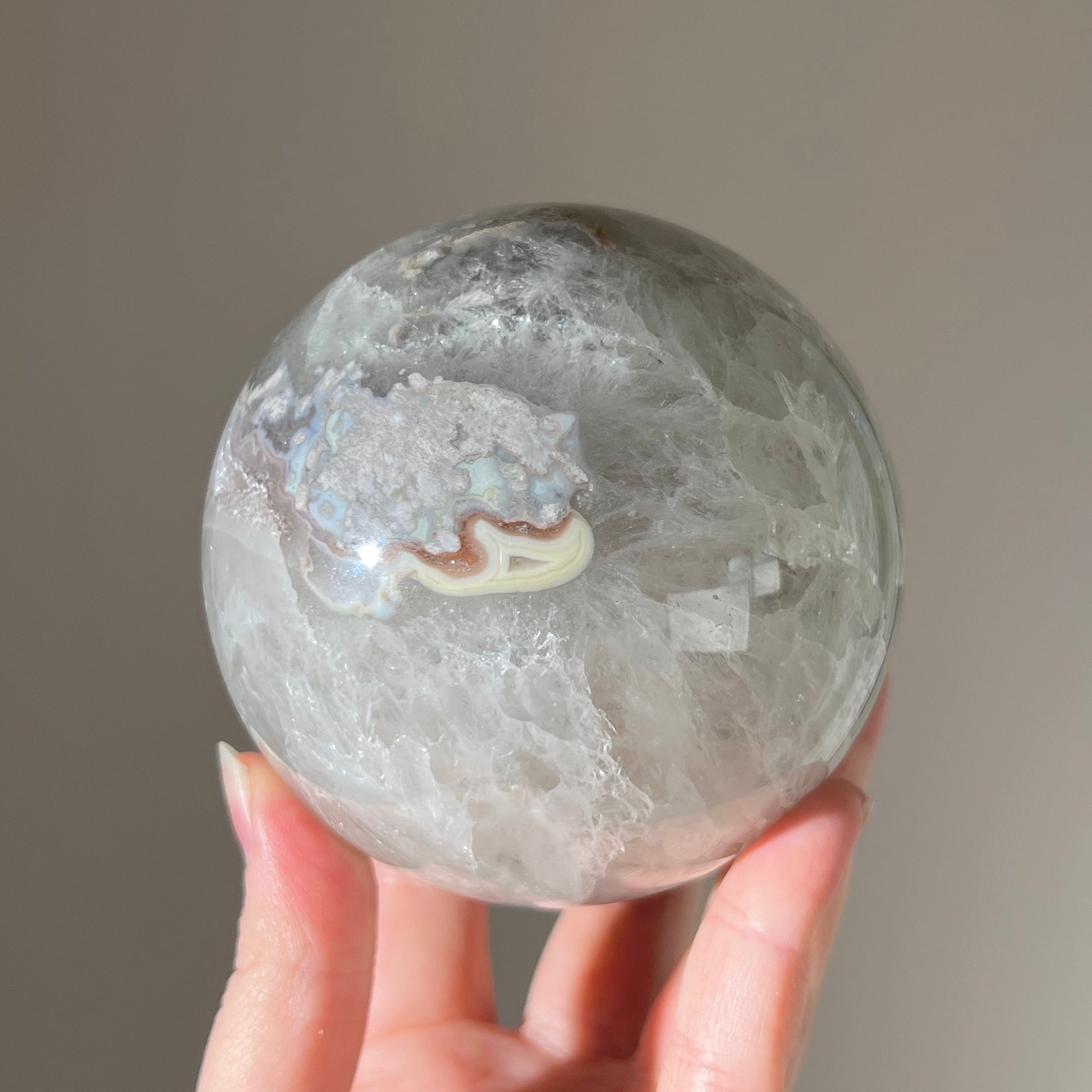Gorgeous Green Quartz (Prasiolite) & Flower Agate sphere.