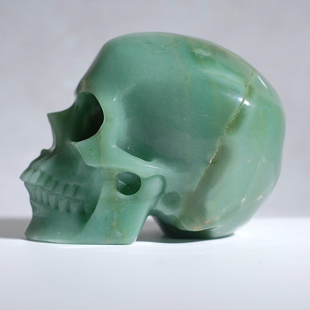 beautiful large size & realistically carved style / lovely calming green hue all over, with some natural interesting variations / glossy polished finish, please note the surface imperfection running along the back side of the skull - this is just a natural feature of the stone / a perfect companion for meditation, healing & metaphysical work