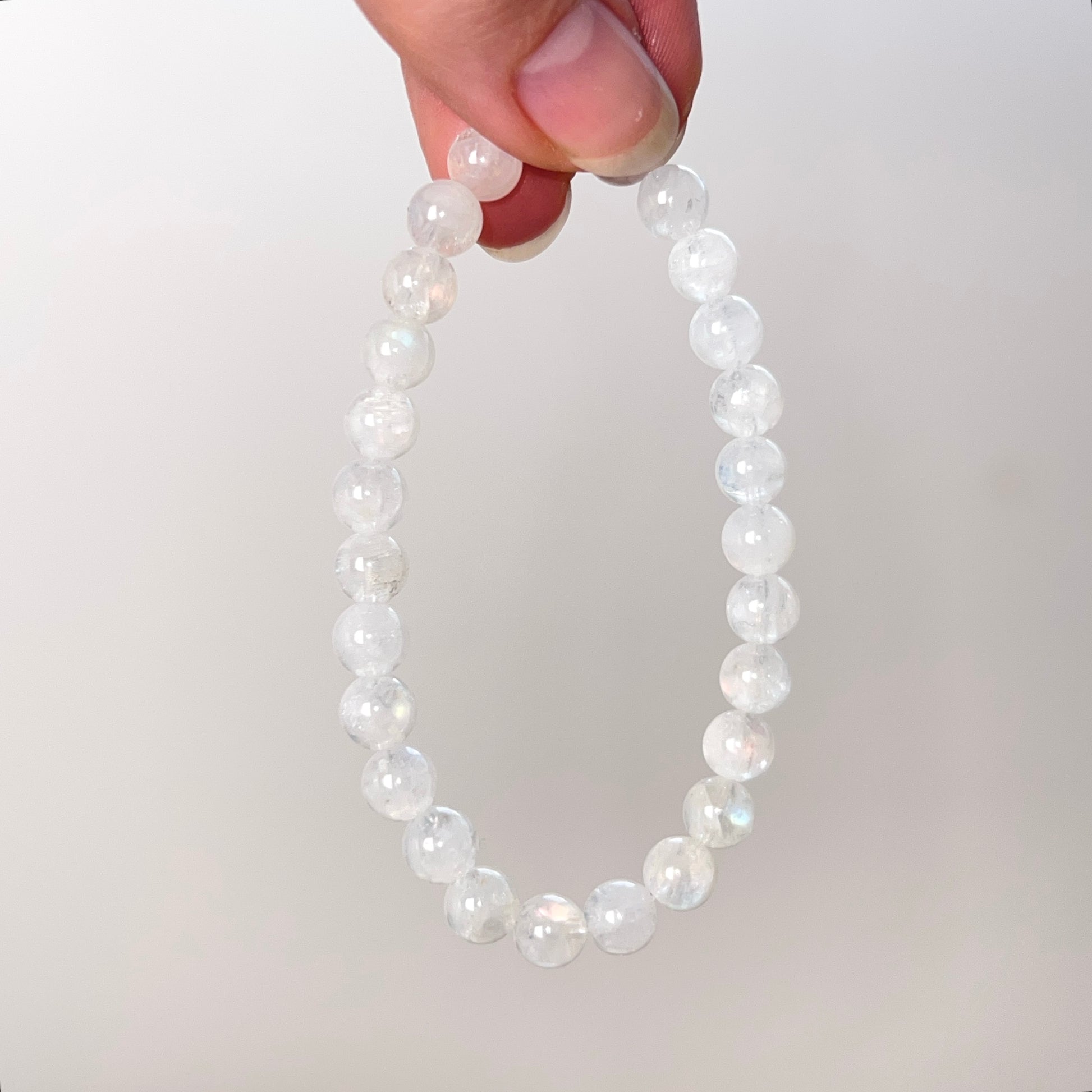 genuine rainbow Moonstone from Madagascar / bead size is 6mm / one size fits most, up to approx 7 inches (18cm) / polished finish / please avoid wearing in water or when using cleaning chemicals as this may prematurely degrade the stretch cord - with proper care they will last many many years! :)