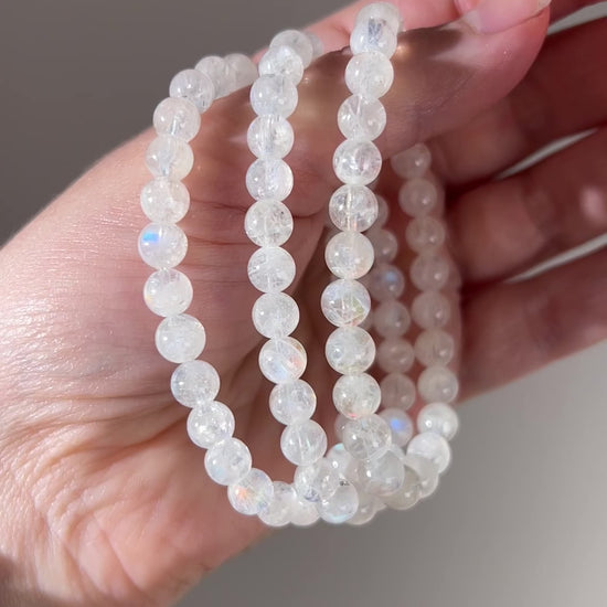 Malagasy Moonstone Bracelet | Rainbow Moonstone Crystal Stretch Bracelet