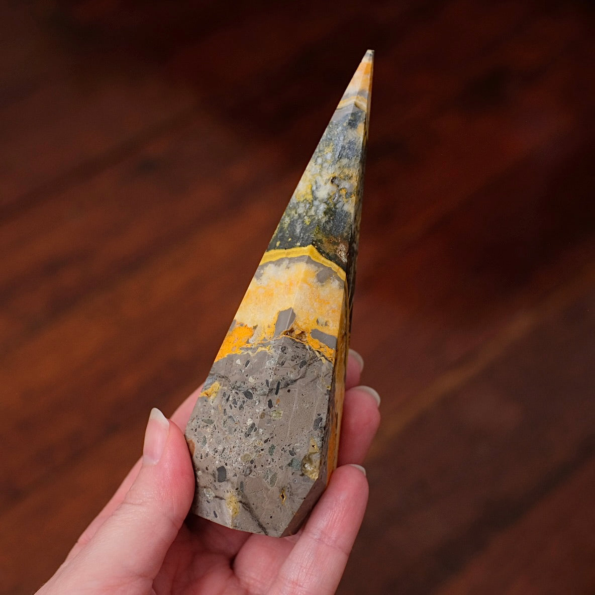 Set : Phosphosiderite & Bumblebee Jasper Prism Point | Crystal Diamond Display