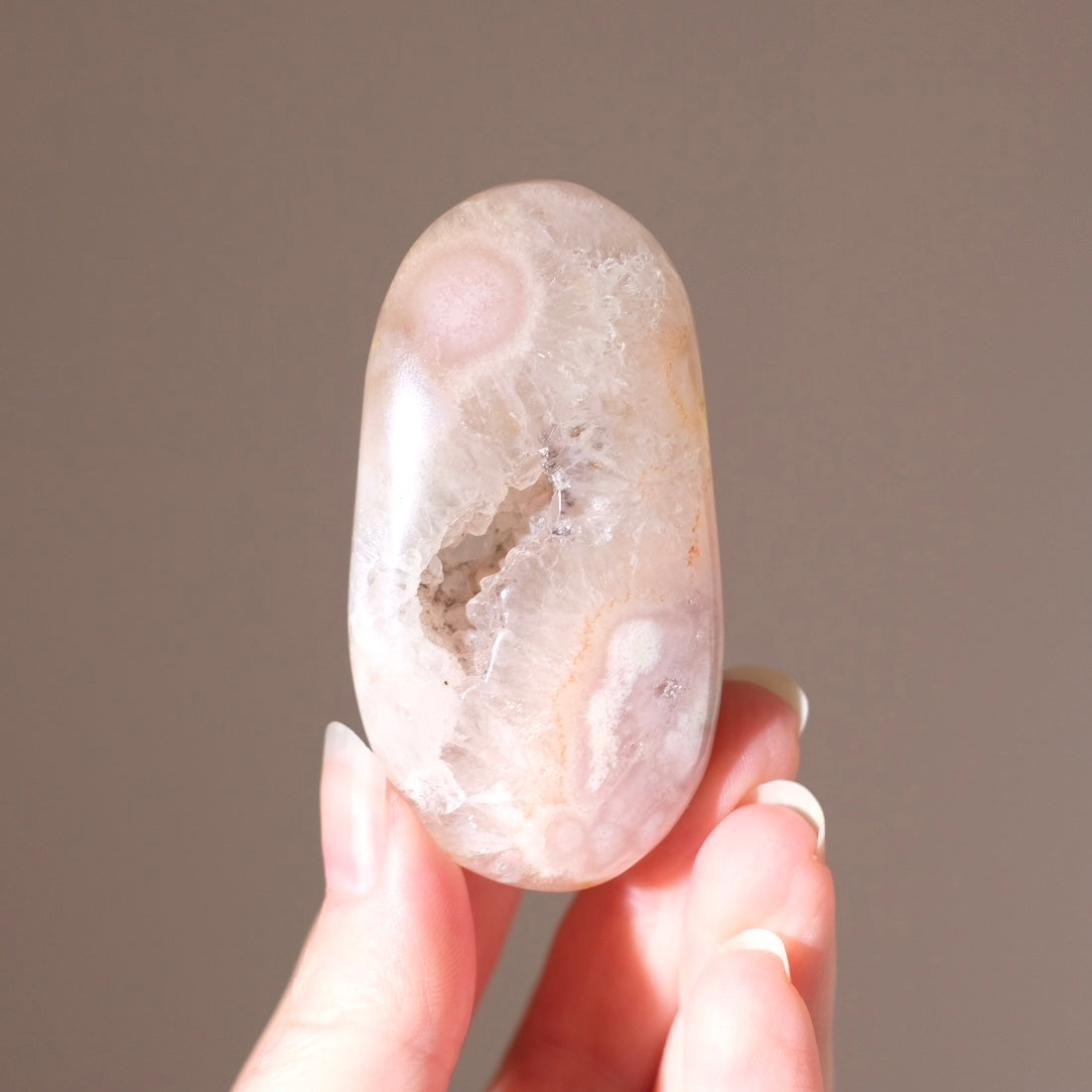 Pink Flower Agate + Quartz Palm | Crystal Palm Stone