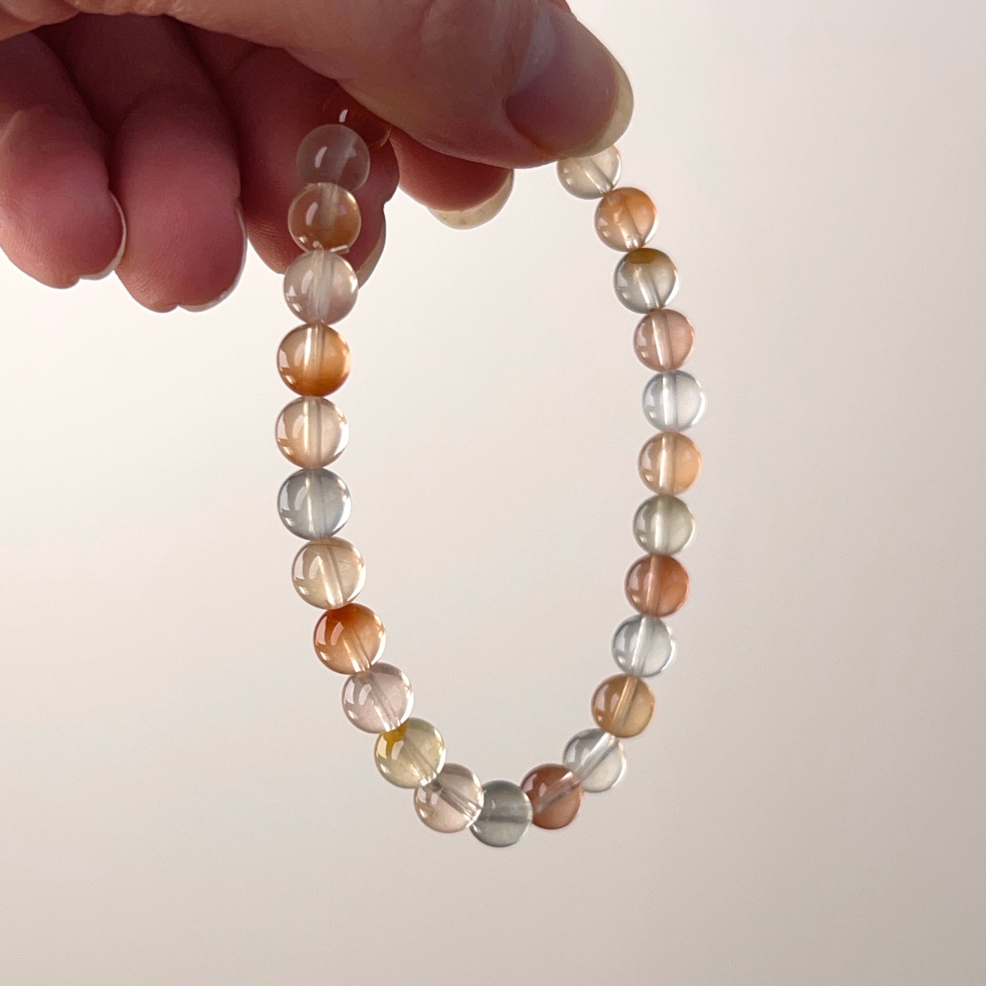 pretty colouration with a range of pastel tones, a truly lovely & special piece / bead size is 6mm / one size fits most, up to approx 7 inches (18cm) / polished finish / please avoid wearing in water or when using cleaning chemicals as this may prematurely degrade the stretch cord - with proper care they will last many many years! :)