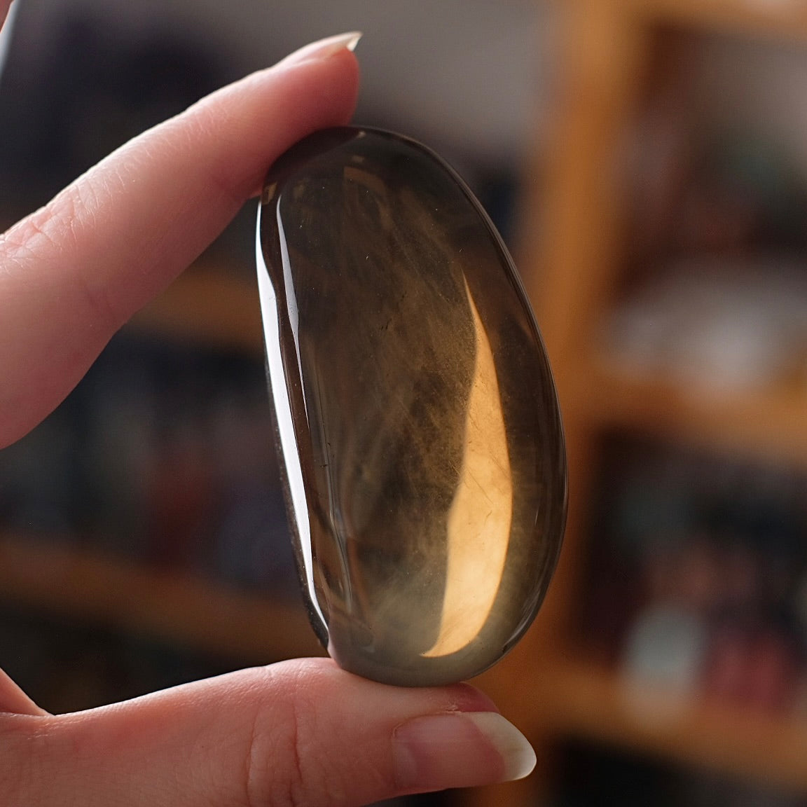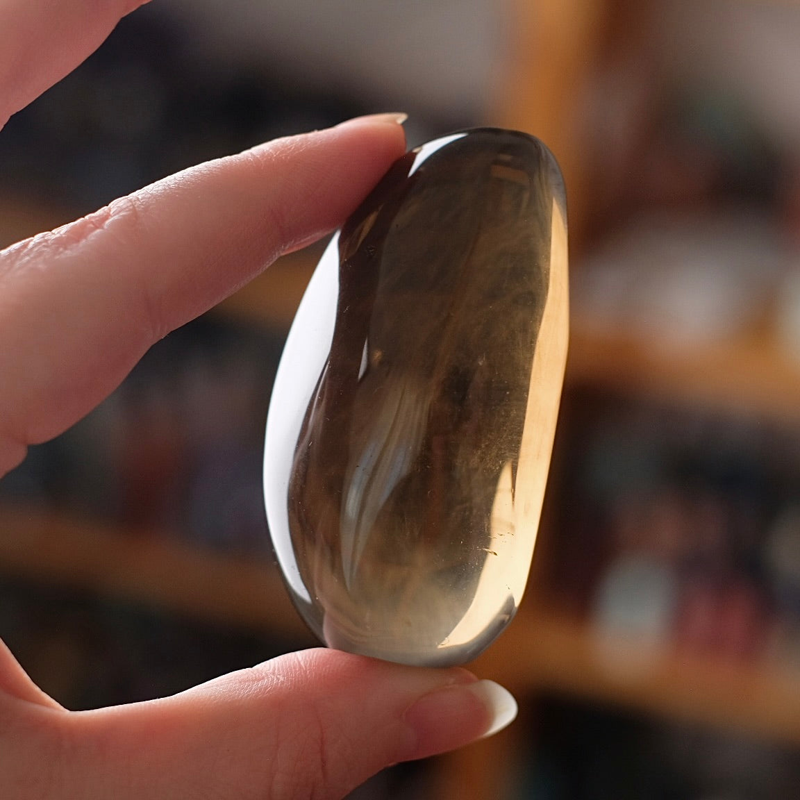gorgeous collectors piece / it displays rare 6-ray star asterism, this is not often seen in smokey quartz / citrine! / lovely Smokey colouration with a slight citrine tinge / it has lovely translucency with some beautiful wispy clouds inside / freeform shape palm / glossy perfectly polished finish