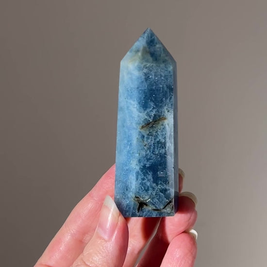 A soothing crystal of clarity, communication, and emotional balance. Resonates with the throat chakra, encouraging honest self-expression, inner peace, and harmonious relationships. It evokes the purity of crystalline waters and carries the calming & cleansing energies of water, washing away stress, fear, and negativity while promoting courage, trust and resilience. It enhances intuition, soothes emotional turmoil, and fosters a deep connection to one’s inner truth. Assists one in letting go of situations or people that no longer serve the highest good, and can help with closure on all levels. Wonderful for meditation, and can sharpen intuition and open clairvoyance. A crystal of serenity and renewal, it supports spiritual growth, clears mental fog, and encourages a flow of wisdom, helping one navigate life with grace and ease.