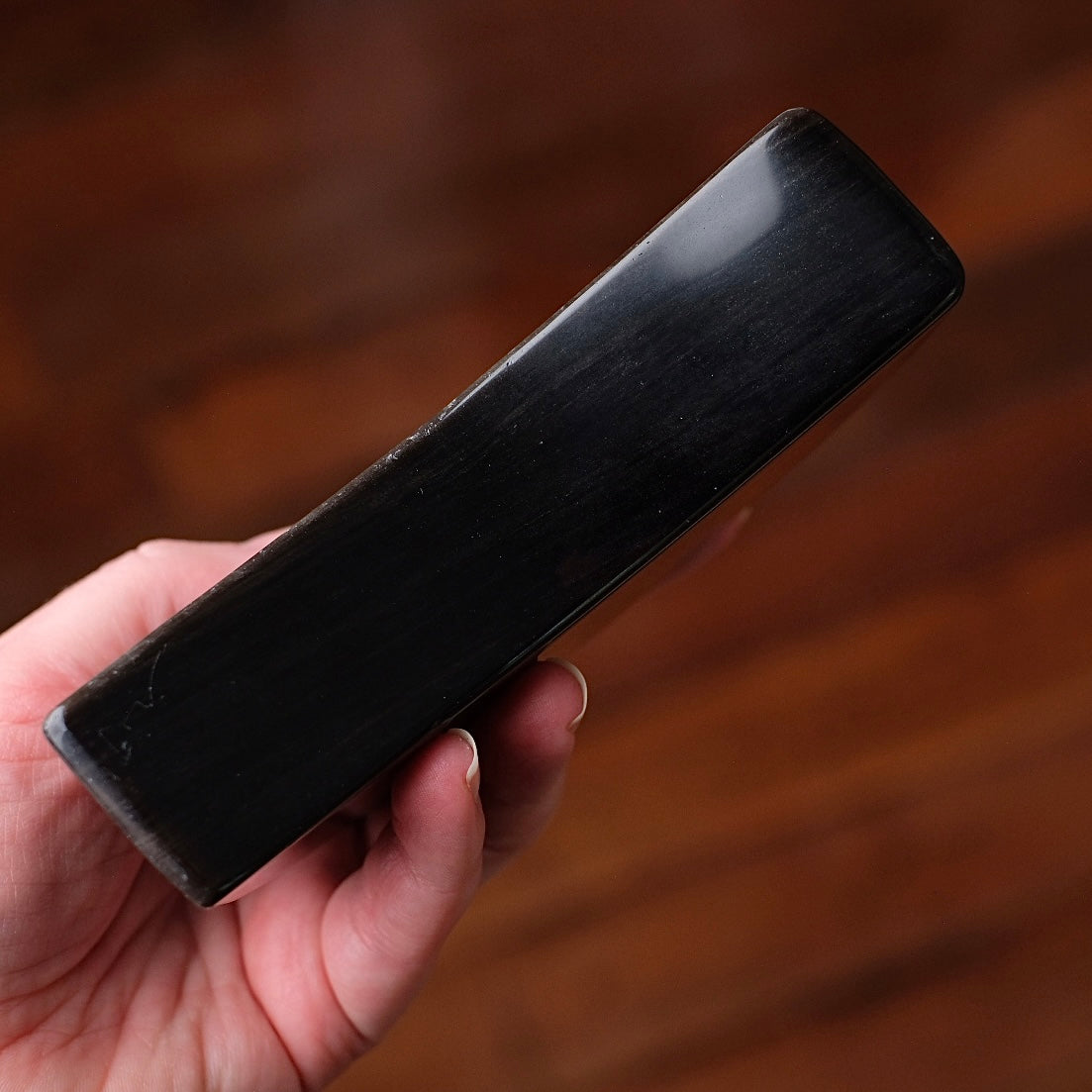 A mesmerizing stone of protection, insight, and personal power. It reveals hidden truths and illuminates the path to self understanding, and has a grounding energy while enhancing confidence and inner strength. Dissolves negative patterns, releases fear, and uncovers the lessons within shadow aspects of the self. It acts as both a shield and a mirror, protecting from negativity while revealing one’s inner potential. A stone of empowerment and clarity, it supports transformation, balance, and conscious awareness. Highly valued for scrying work and divination, it helps reveal messages from the subconscious and spiritual realms.