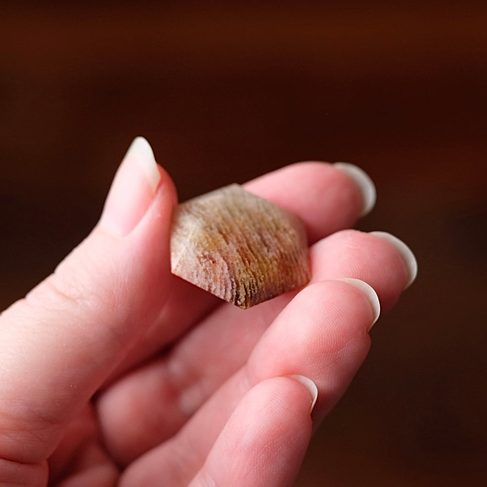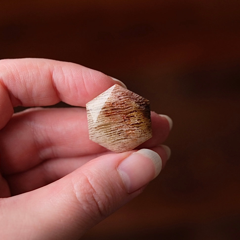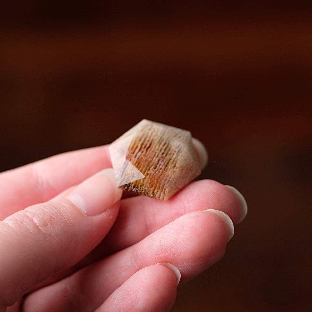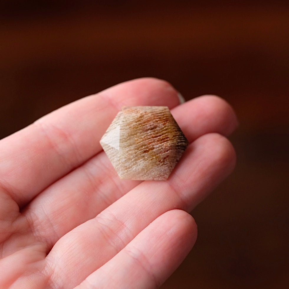 faceted sacred geometry gem stone / sparkles beautifully in the light due to the faceted sides all over, the photos never do these justice! / beautiful layered inclusions within Quartz - this type of Garden Quartz is often called Thousand Layer Quartz / glossy polished finish