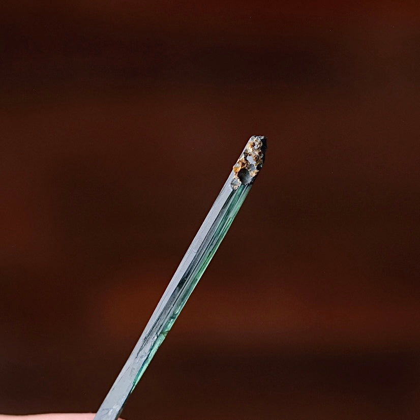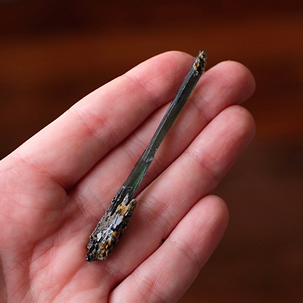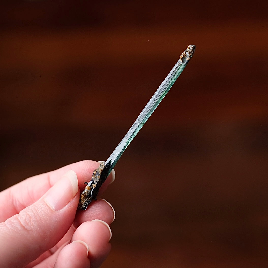 from Brazil / lovely long and thin blade formation / beautiful deep green & blue colouration / completely raw and natural, unpolished specimen as made by Mother Earth / please keep away from direct sunlight as this can fade Vivianite to almost black