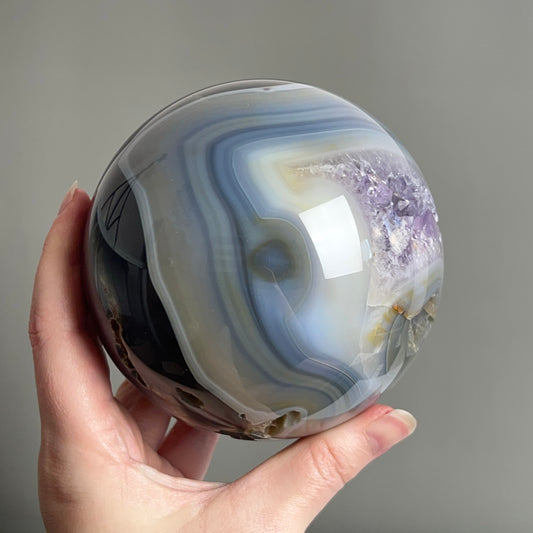 XL Geode Amethyst Sphere | Amethyst & Agate Crystal Sphere