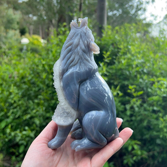 Stunning Druzy Agate Wolf Carving | Crystal Carving