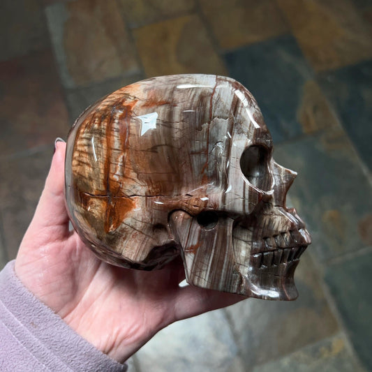 Large Petrified Wood Crystal Skull | Fossilised Wood Skull
